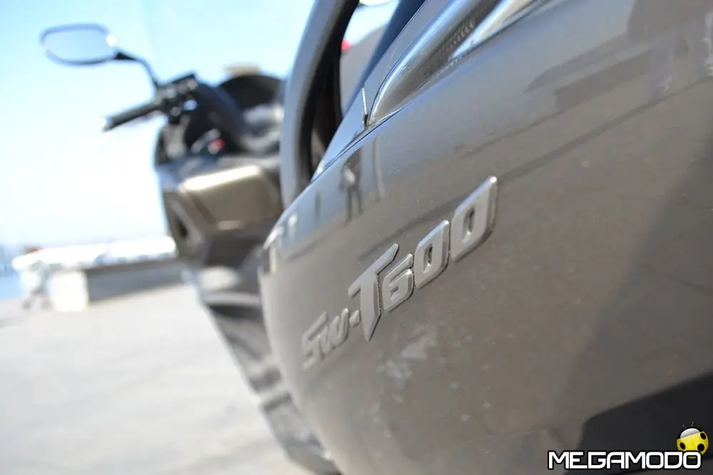 Bauletto da 40 litri (di serie per il mercato italiano) Per rendere l’SW-T600 ancora più pratico il bauletto da 40 litri è l’ideale. Può contenere un casco integrale e molti altri oggetti ed è provvisto di cinghie interne per evitare che il contenuto si muova al suo interno durante la guida danneggiandosi. All’interno vi è un tappetino antisdrucciolo imbottito che evita danni durante le sollecitazioni più repentine. Il guscio superiore è in tinta con la carrozzeria e il sistema di aggancio e sgancio è di tipo rapido. E’ provvisto di maniglia per un facile trasporto a mano ed integra il poggia schiena per il passeggero.