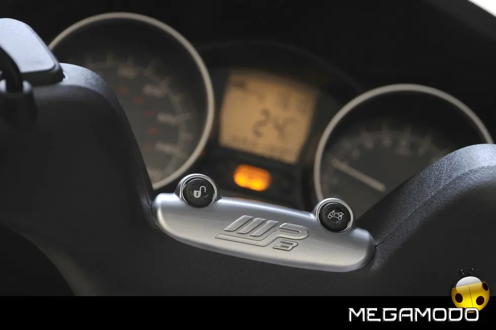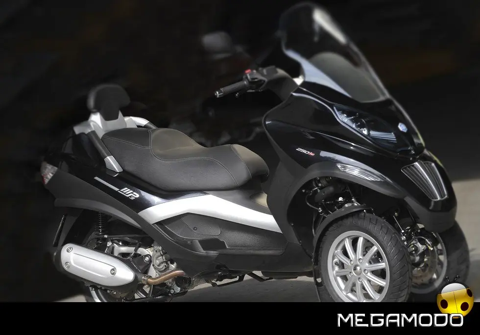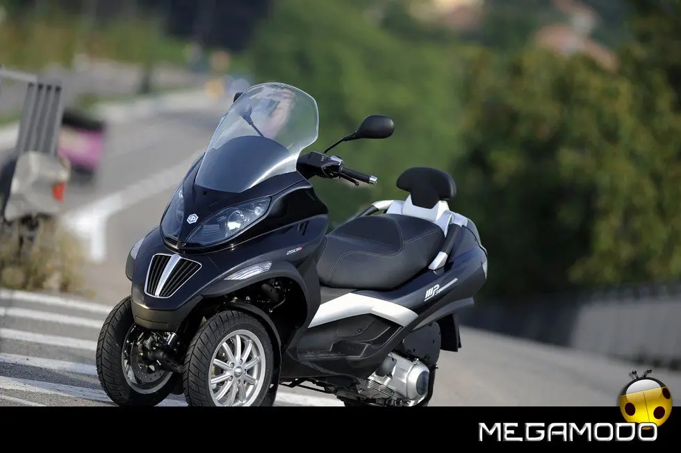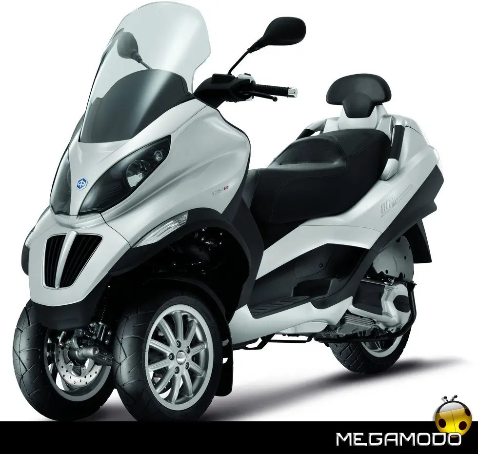 Piaggio MP3: un progetto unico al mondo. La guida di Piaggio MP3 è un’esperienza assolutamente rivoluzionaria, grazie al sistema di sospensione e alla doppia ruota anteriore che consente una stabilità in curva superiore a qualsiasi scooter. In velocità, anche nella scia di altri mezzi, Piaggio MP3 rimane incollato al terreno e raggiunge le massime prestazioni nella totale sicurezza. E la rivoluzione delle tre ruote si avverte in tutta la sua importanza sull’asfalto bagnato o in condizioni critiche per i mezzi tradizionali. Nei percorsi cittadini e metropolitani Piaggio MP3 non ha paragoni in fatto di sicurezza: pavé, asfalto irregolare o sconnesso, rotaie, tombini sono superati con una facilità e una stabilità mai provate prima.