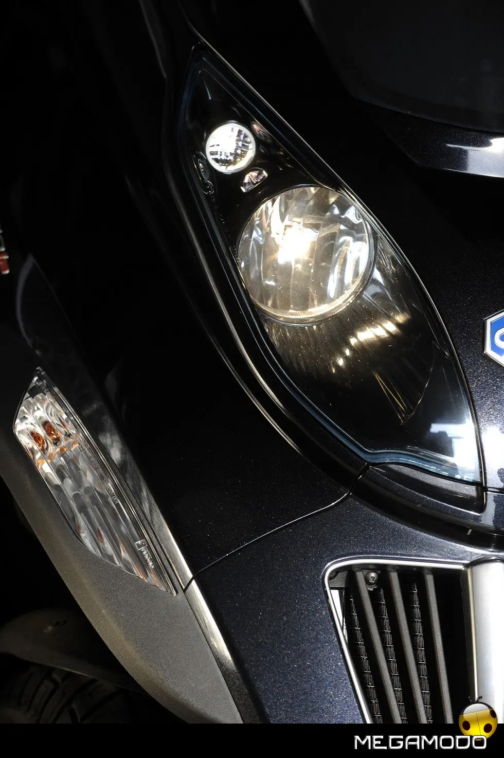 Il nuovo e più elegante aspetto della famiglia MP3 è sottolineato dalla calandra di disegno automobilistico, da nuove finiture, da fari e parabrezza in tonalità azzurra, dai nuovi inserti che alternano parti verniciate e parti cromate e dal nuovo maniglione posteriore.