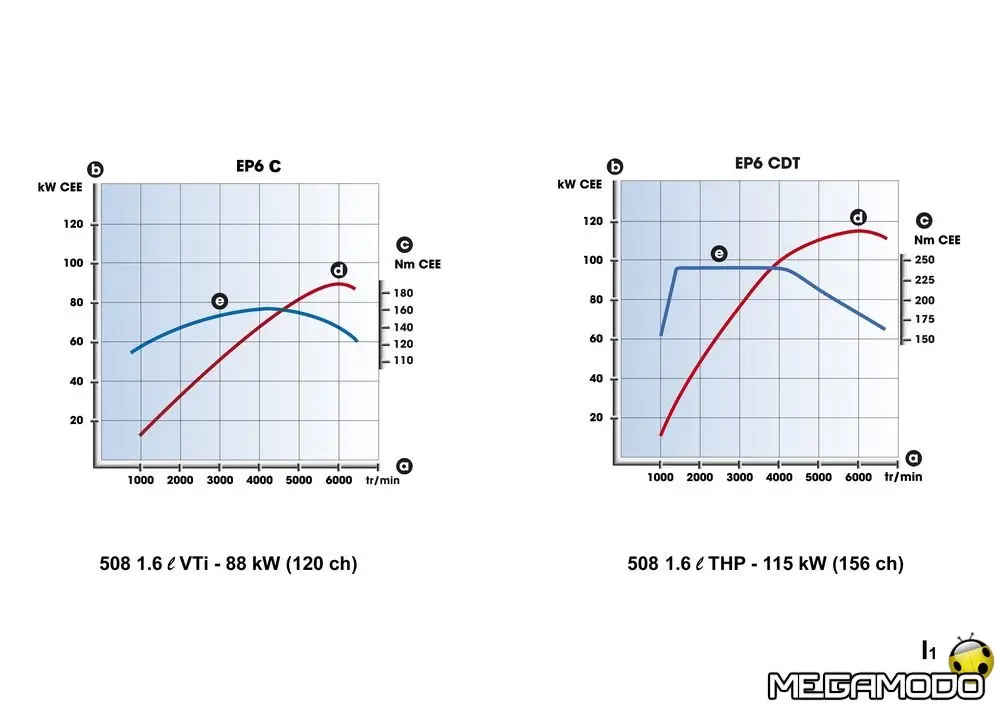 508 benzina: - 1.6 16V VTi 88 kW (120 CV) ; 160 Nm, cambio robotizzato a 6 rapporti (BMP6): 144 g/km, - 1.6 16V THP 115 kW (156 CV), 240 Nm, cambio manuale a 6 rapporti; CO2: 149g/km , - 1.6 16V THP 115 kW (156 CV), 240 Nm, cambio automatico a 6 rapporti; CO2: 164 g/km.