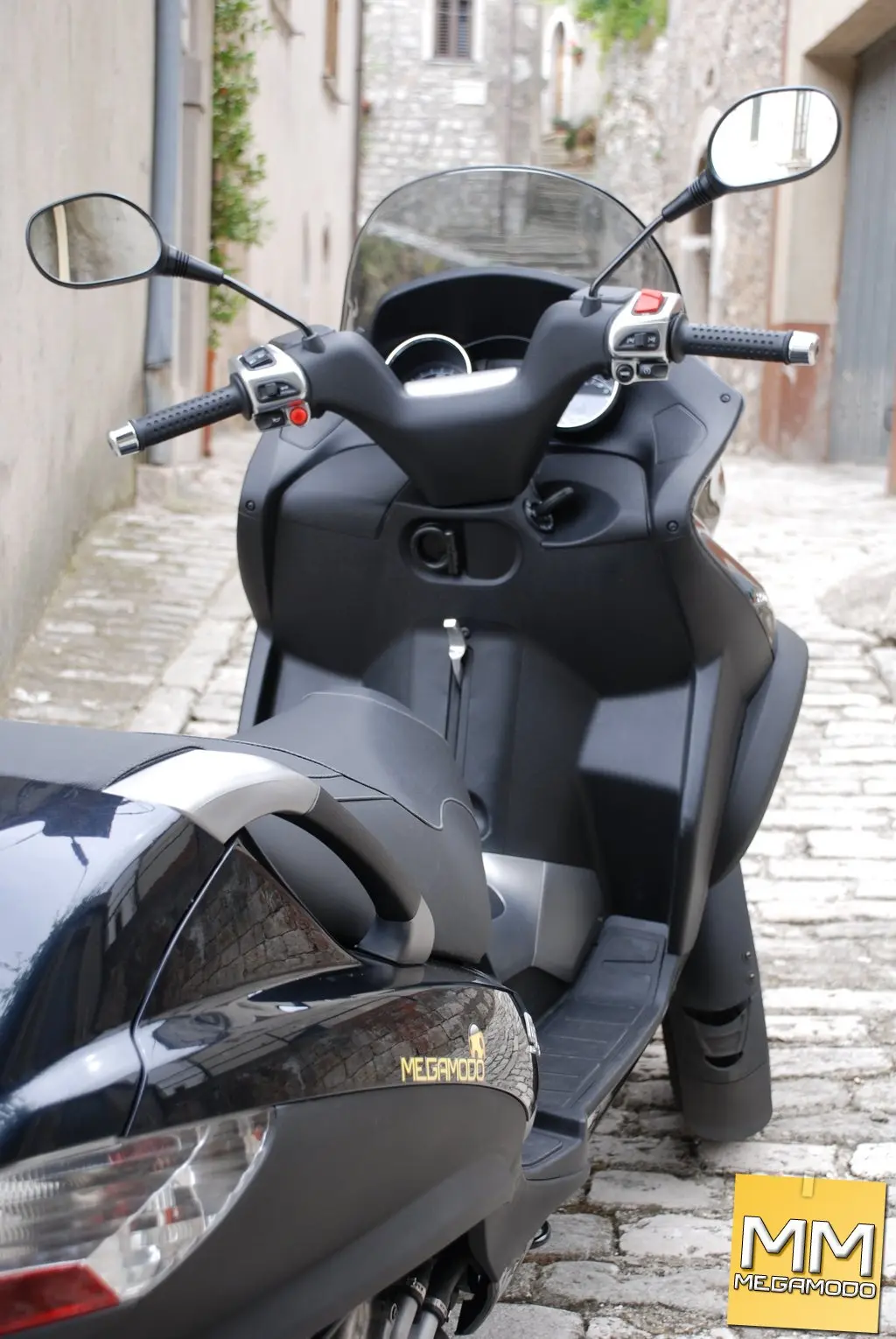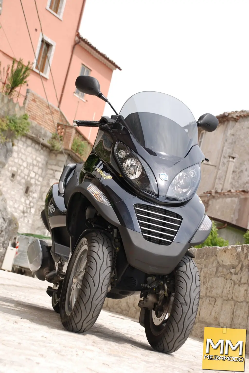 ULTERIORI ACCESSORI SONO: - Navigatore TOM TOM Rider, Bluetooth, con schermo LCD 3,5”. - Casco Piaggio X-Jet Bluetooth Intercom, dotato di sistema di comunicazione integrato che consente a pilota e passeggero di dialogare nella massima sicurezza e, allo stesso tempo, di utilizzare il telefono cellulare. - Antifurto bloccadisco con allarme sonoro, un antifurto meccanico bloccadisco estremamente tenace dotato anche di allarme acustico. - Portapacchi posteriore con piastra ribaltabile, che permette l’utilizzo del portellone posteriore anche in presenza del bauletto. - Bauletto posteriore da 48 litri che, insieme all’ampio vano di carico sottosella, consente di raggiungere una capacità di carico superiore a 110 litri. - Parabrezza maggiorato con paramani. - Antifurto elettronico con telecomando. - Una linea di caschi dedicata: X-Jet, pensata espressamente per la città, X-Tour, comodo e pratico casco modulare, e X-Sport, integrale in fibra di vetro ultraleggera. Il Piaggio MP3 è disponibile in quattro diverse colorazioni, tutte metallizzate: Azzurro Sky, Rosso Ruby, Grigio Excalibur e Nero Grafite. Il prezzo franco concessionario è di € 5.000 per la versione base, € 5.400 per la versione C (col parabrezza), € 5.800 per la versione RL (con il blocco antirollio easy parking) ed € 6.150 per la versione CRL (top di gamma). La location utilizzata per il servizio fotografico è stata il centro storico di Morcone (BN), uno dei luoghi più belli del Sannio. Vicoli e vicoletti di un tempo, che hanno messo a dura prova l’MP3, che però non ne ha risentito minimamente. La cittadina si affaccia sulla valle del Tammaro lungo il confine tra la Campania e il Molise, arroccata e posta a ventaglio sulle falde del Monte Mucre. Di origini antichissime vanta ritrovamenti di suppellettili ed armi risalenti addirittura ai periodi paleolitico ed eneolitico nella zona di Canepino. Fu fortificazione Sannitica di una certa importanza, come fa intuire lo stesso Tito Livio, della quale sono presenti ritrovamenti situati nella parte più alta del paese. I numerosi reperti di epoca romana rinvenuti nella pianura del Tammaro fanno facilmente intuire una lunga e massiccia presenza delle legioni di Roma dedite alla conquista della fortificazione sannitica. La città fu attiva in epoca medioevale fin prima del 776, così come affermato dal Meomartini, e quindi già in epoca longobarda, quando fu sede di Gastaldato. Durante il XVII e XVIII secolo Morcone fu sede di una fiorente industria per la produzione di panni di lana battuti grazie alla gualchiere presenti nella zona che venivano mosse dalla forza idraulica dei numerosi torrenti presenti sul territorio. Non a caso è ancora ben visibile il resto di un antico mulino dell’800. Durante il fascismo numerosi personaggi illustri del tempo hanno soggiornato a Morcone. Tra i tanti va ricordato il Principe ereditario Umberto II di Savoia nel 1933.