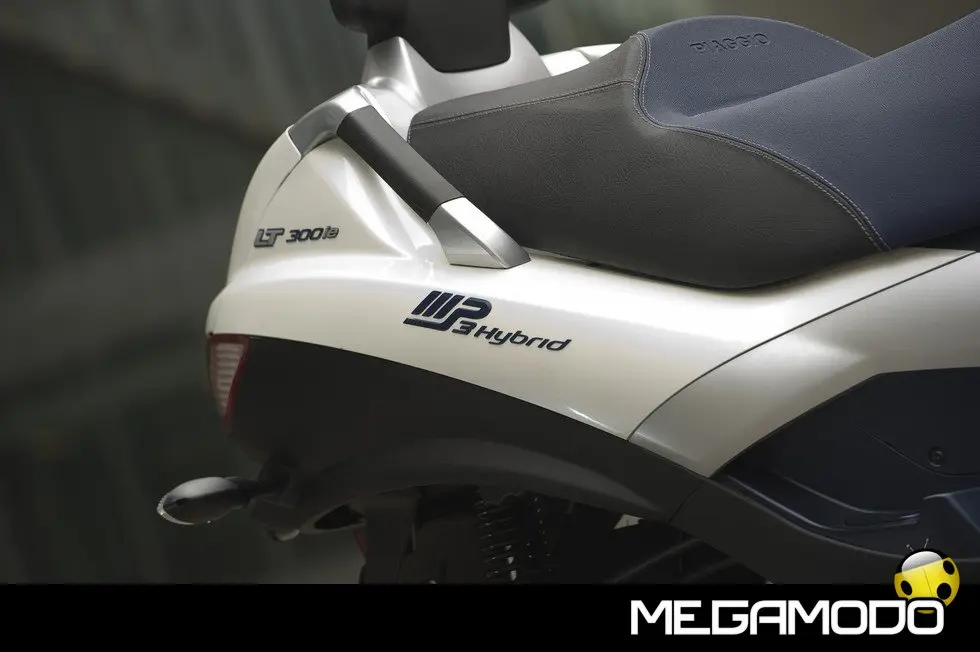 Piaggio Mp3 Hybrid, pur rispettando le caratteristiche estetiche e funzionali tipiche della gamma MP3, è il primo veicolo ibrido al mondo a offrire la possibilità di ricarica da rete (Plug-In) unita alle innovative batterie agli ioni di litio che – grazie alle caratteristiche di densità di energia e affidabilità – garantiscono, rispetto alle tecnologie oggi normalmente in uso, più alte prestazioni, superiore leggerezza e maggiore longevità. Il pacco batterie, con elettronica di controllo integrata, è "nascosto" nel vano sottosella e consente inoltre di mantenere lo spazio sufficiente ad alloggiare un casco ed altri oggetti. All’interno del vano è inoltre presente una utile presa da 12V per la ricarica degli apparati elettronici.