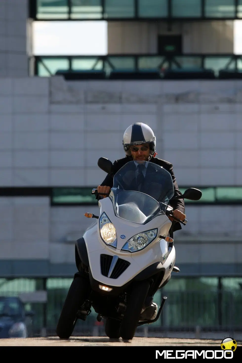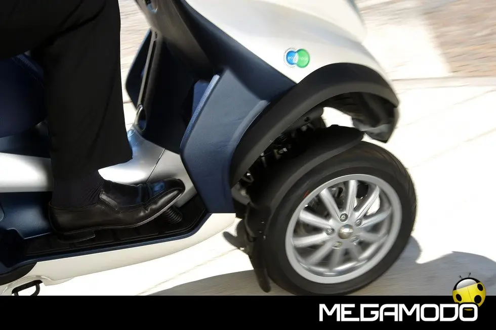 Mp3 Hybrid LT 300ie è divertente e sicuro nei tratti extraurbani, nei quali mette in mostra le superiori caratteristiche dinamiche di Piaggio Mp3, e allo stesso tempo può accedere anche alle aree ad accesso limitato a i soli veicoli elettrici: due scooter in uno per una mobilità sicura, facile, economica, divertente. Grazie alla carreggiata anteriore di 465 mm, Piaggio Mp3 Hybrid LT 300ie può essere guidato (anche in tangenziali e autostrade) con la sola patente auto, con l’evidente vantaggio di rendere disponibile per tutti la tecnologia ibrida, aprendo a fasce sempre più ampie di utenti la possibilità di una mobilità rispettosa dell’ambiente. Coerente con la nuova classe di omologazione il nuovo Piaggio Mp3 Hybrid LT 300ie ha il freno a pedale con sistema di frenata combinata, ma mantiene anche le normali leve di freno anteriore e posteriore, a garanzia di una sicurezza attiva che non ha eguali nel mondo scooter.