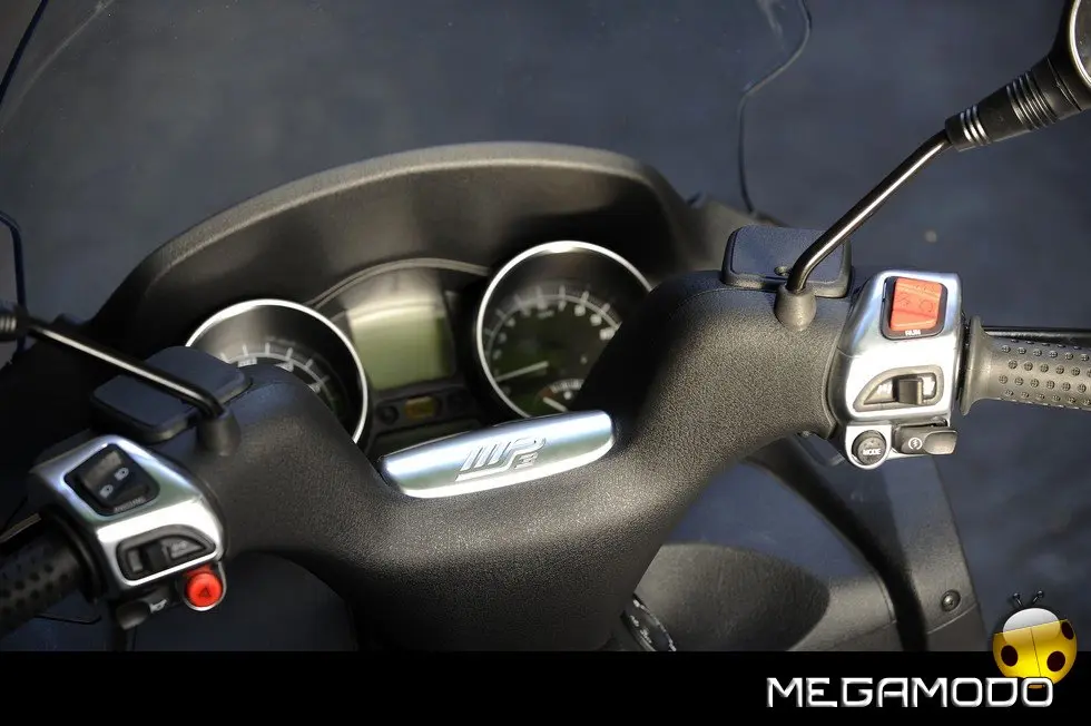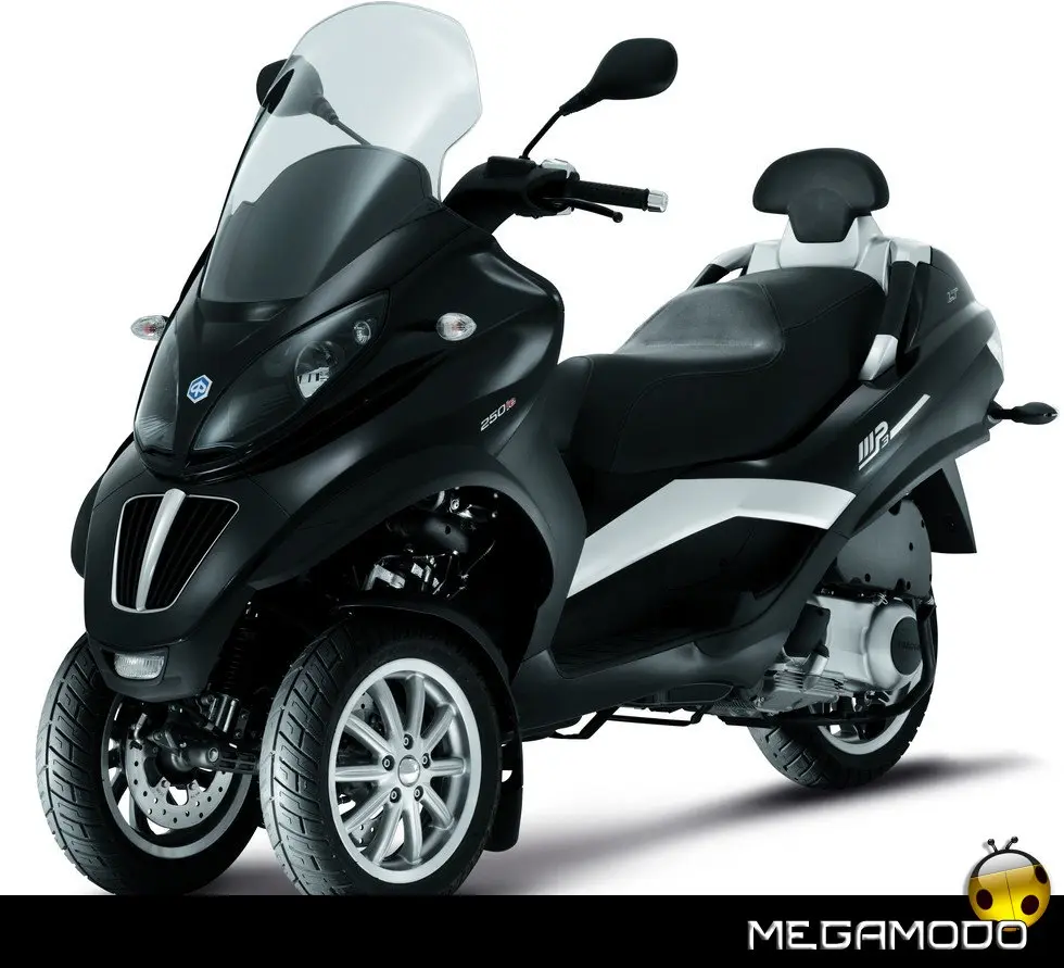 Anche il comfort è aumentato: - la sezione posteriore della sella è stata ridisegnata per offrire la massima comodità al passeggero, - il nuovo maniglione passeggero ha lo schienale integrato, - il parabrezza è più ampio e assicura una grande protettività contro gli agenti atmosferici, - anche la versione 250 ha ora la ruota posteriore da 14” (era 12” su MP3) per un controllo e una tenuta ancora migliori.