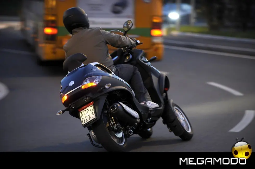 E la rivoluzione delle tre ruote si avverte in tutta la sua importanza sull’asfalto bagnato o in condizioni critiche per i mezzi tradizionali. PIAGGIO MP3 LT è uno scooter, si guida come un normale “due ruote”, richiede come è naturale la capacità e l’esperienza necessarie a guidare veicoli di potenza e cilindrata superiori, ma nei percorsi cittadini e metropolitani non ha paragoni in fatto di sicurezza: pavé, asfalto irregolare o sconnesso, rotaie, tombini sono superati con una sicurezza e una stabilità mai provate prima.
