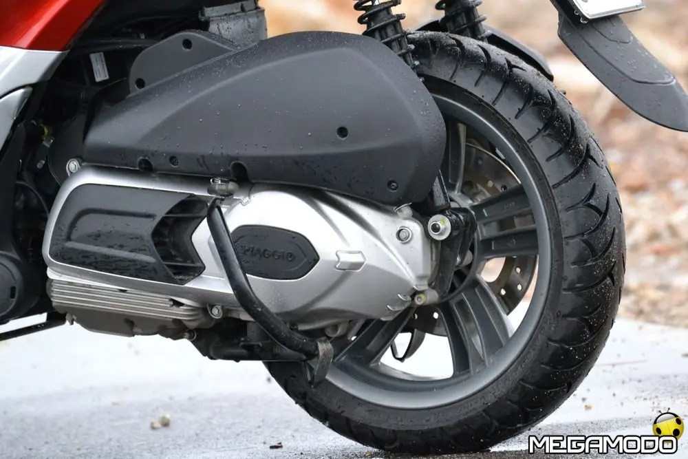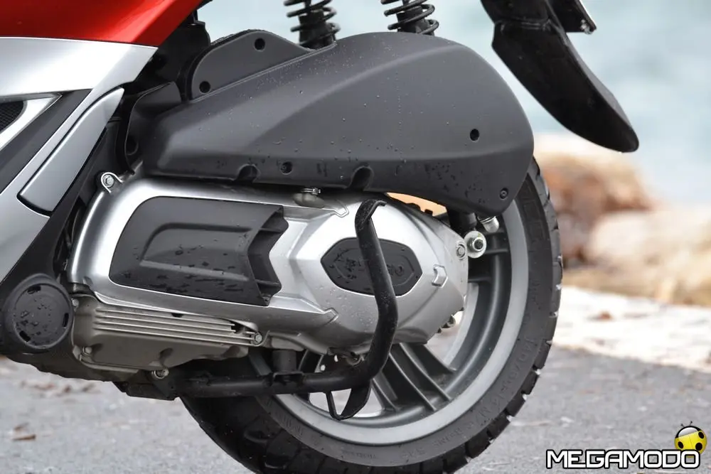 Il propulsore 300 cc, monocilindrico a 4 tempi, 4 valvole, a iniezione elettronica, fornisce una potenza massima di 22,4 CV a 7.500 giri ed eroga una coppia massima di 23,2 Nm a soli 6.500 giri: valori che assicurano un’elevata prontezza nella risposta del gas e prestazioni estremamente brillanti, rendendolo un mezzo ideale tanto per districarsi nel congestionato traffico cittadino quanto per trasferimenti di medio raggio in totale comodità, da soli o con passeggero.