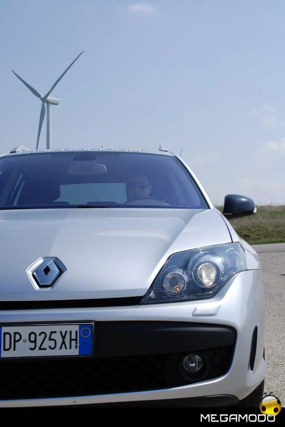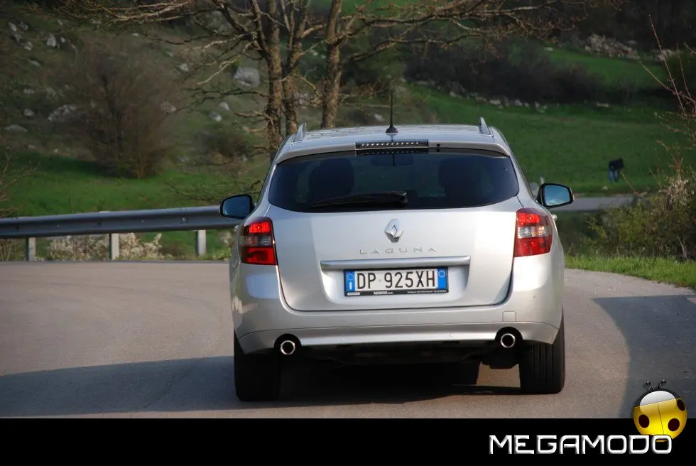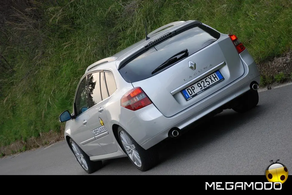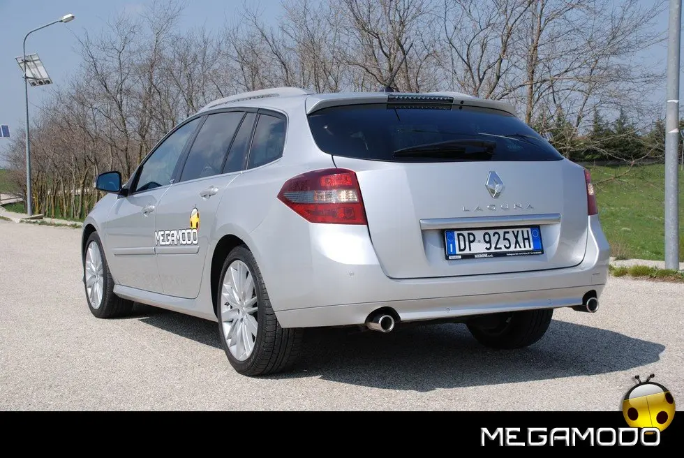 Sviluppato congiuntamente dalle équipe di Renault e Renault Sport Technologies, il telaio Active Drive funziona grazie ad un sistema di gestione elettronica della dinamica dell’auto. Attraverso la rete CAN, il sensore ubicato sul piantone dello sterzo invia l’informazione sull’angolazione del volante alla centralina 4RD, situata nella parte posteriore del retrotreno, che recupera anche i dati relativi alla velocità dell’auto, provenienti dal gruppo ESP/ABS. Confrontando i valori di angolazione del volante nel tempo, la centralina è in grado di individuare i movimenti veloci del volante, sinonimo di guida sportiva o di manovre di evitamento ostacoli. In funzione di tali parametri, la centralina impartirà la consegna adeguata di sterzata delle ruote posteriori al martinetto dell’attuatore elettrico, montato sull’assale posteriore. La precisa modellizzazione del comportamento dinamico dell’auto consente un costante controllo della traiettoria ideale, sulla base delle informazioni provenienti dalle iniziative del conducente e dalla situazione reale dell’auto. Centralina ed attuatore elettrico sono forniti da Aisin, componentista giapponese apprezzato per la sua esperienza nel campo delle 4 ruote sterzanti. Due le motorizzazioni: la prima 2.0 dCi è proposta con un eccezionale livello di potenza di 180 cv (131 kW) a 3750 g/min. Con una coppia massima di 400 Nm, disponibile fin da 2000 g/min, l’aumento di regime è rapido e costante fino a 5000 g/min. Questa configurazione consente al propulsore, equipaggiato con turbo a geometria variabile a inerzia ridotta, che privilegia la dinamica ai bassi regimi, di esprimere il meglio di sé: la vettura percorre il chilometro con partenza da fermo in appena 29,6 secondi (accelerazione da 0 a 100 km/h in 8,5 secondi). Equipaggiata con filtro antiparticolato e valvola EGR a raffreddamento potenziato, questa nuova versione dedicata al piacere intenso rispetta l’ambiente con un consumo in ciclo misto di 6,5 litri/100 km (172 g di CO2 emessi per chilometro percorso). Con le candele di preriscaldamento ultrarapide, il propulsore 2.0 dCi 180 cv FAP entra in azione immediatamente tramite il pulsante “Start”, anche in situazione di freddo intenso (-23°C). L'altra benzina invece, monta la declinazione sportiva del 2 litri turbo 16 valvole: 205 cv (150 kW) a 5000 g/min e 300 Nm disponibili fin da 3000 g/min. Frutto della tecnologia di Mégane Renault Sport, questa motorizzazione è stata specificamente ottimizzata per New Laguna GT al fine di garantire, al tempo stesso, performance, grinta ed intenso piacere di guida, una versatilità caratterizzata da un comportamento particolarmente elastico e fluido, ma anche da una stupefacente reattività e rigidità per un utilizzo sportivo. La vivacità della salita nei regimi è stata ottenuta intervenendo sull’aspirazione dell’aria e utilizzando un turbo a doppia entrata (Twin scroll Turbo) che riduce i tempi di risposta. New Laguna GT 2.0T accelera da 0 a 100 km/h in 7,8 secondi e percorre i 1000 metri con partenza da fermo in 28 secondi, con un consumo contenuto di 8,2 litri/100 km (194 g di CO2 emessi per chilometro percorso). Con una linea espressiva e raffinata, New Laguna GT è più di una semplice versione sportiva. All’estremità del lungo cofano motore spiovente, il frontale aggressivo svela una griglia che contraddistingue i modelli più dinamici della marca. Le prese d’aria laterali ne sottolineano la natura sportiva, esaltata dallo sguardo distintivo dei proiettori, inquadrati da una mascherina nera. Derivata dagli sviluppi della competizione in Formula 1, New Laguna GT calza specifici pneumatici sovradimensionati Bridgestone Potenza 225/45 da 18 pollici. I cerchi traforati Celsium, che le sono dedicati, permettono di intravedere i dischi dei freni di 320 mm di diametro all’anteriore e di 300 mm al posteriore che garantiscono una maggiore efficacia. Le carenature, sottolineano le eccezionali qualità del telaio Active Drive fino al caratteristico doppio terminale di scarico cromato. I retrovisori in tinta nero brillante e i gruppi ottici posteriori fumé ricordano che, anche in tema di design, New Laguna GT ha tutte le qualità di una grande stradista sportiva.