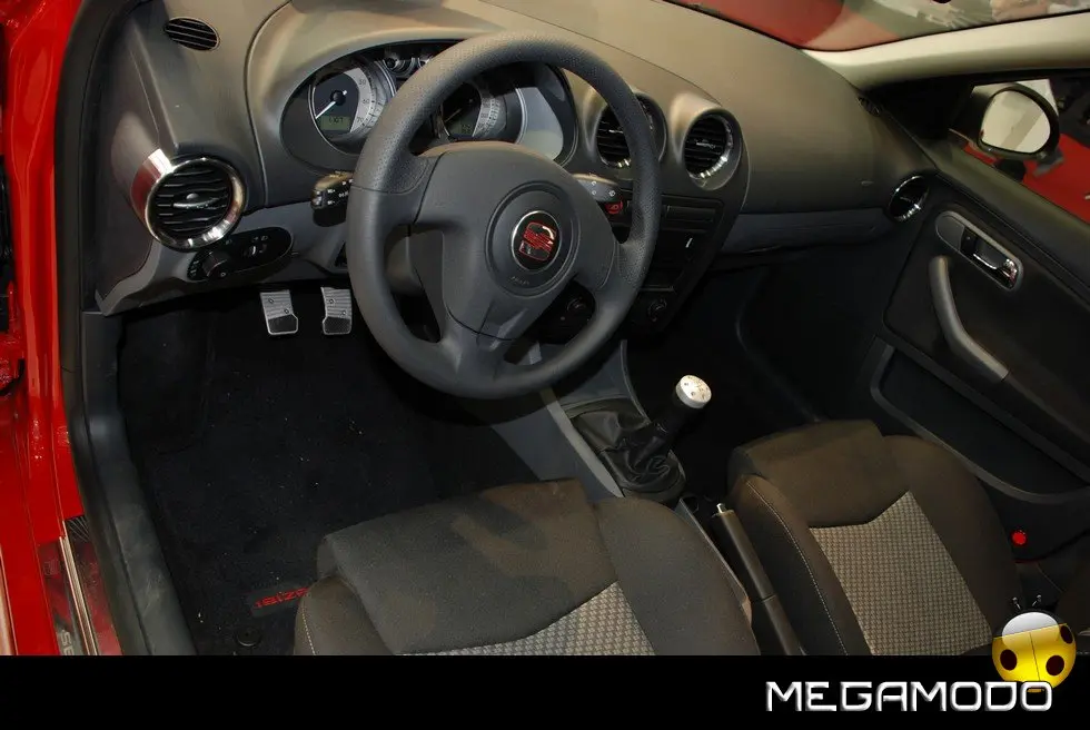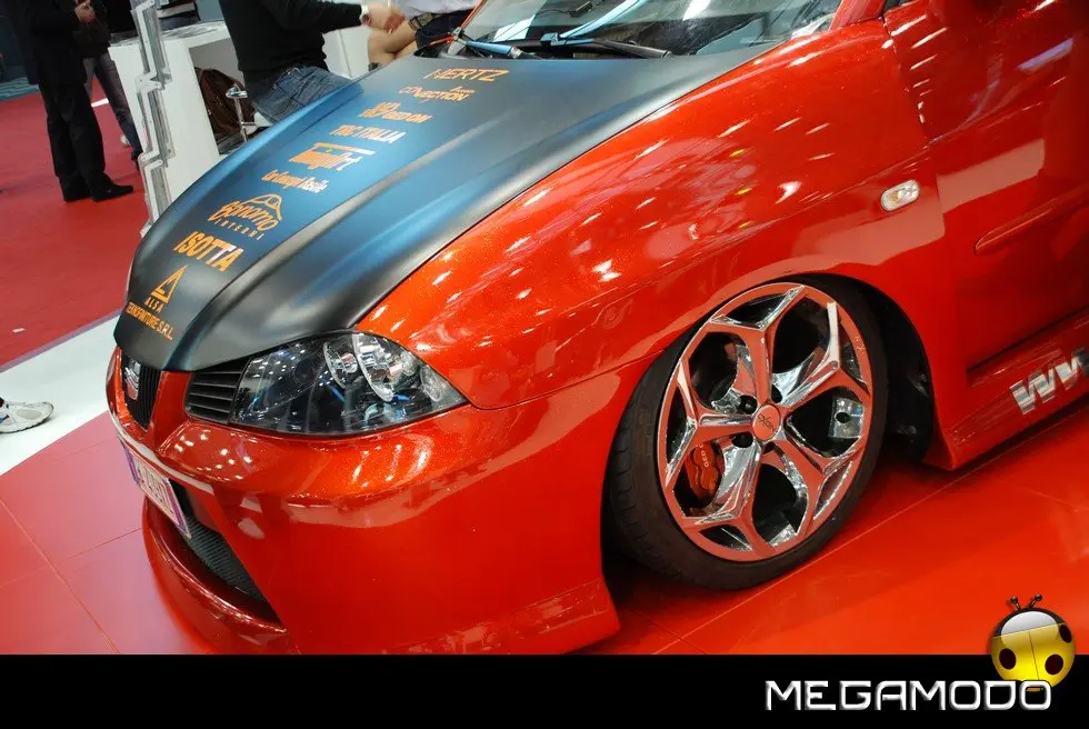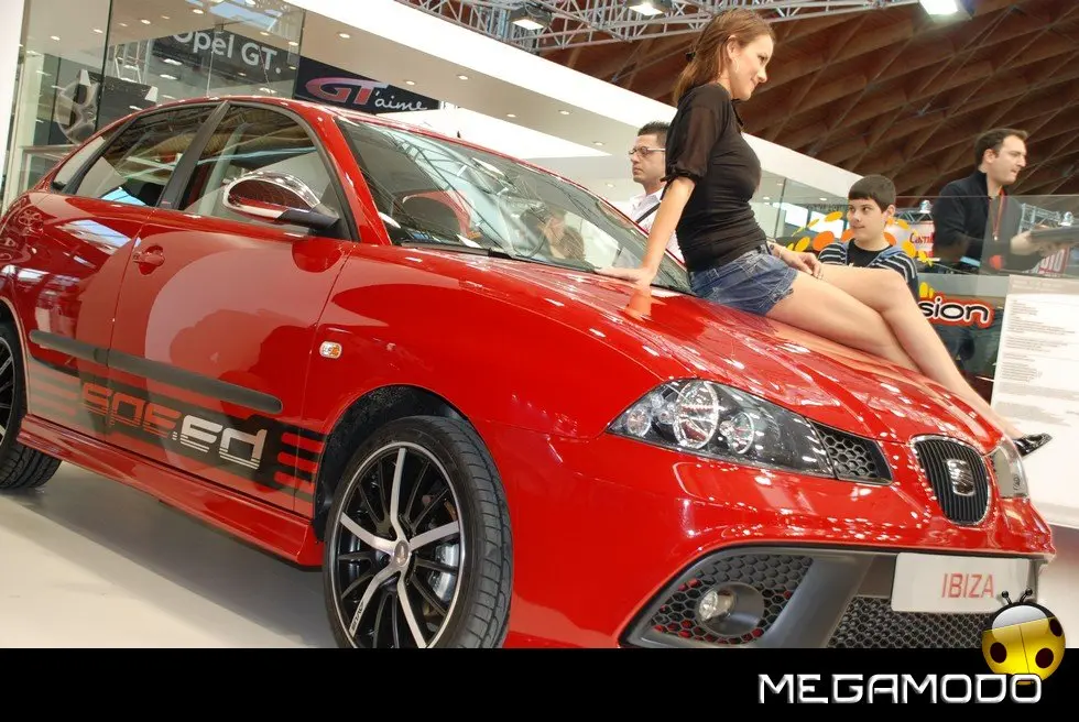 Il vivace stand della SEAT presso la Fiera di Rimini vedrà protagoniste le ultime novità in fatto di allestimenti speciali, studiati per vetture altrettanto particolari. Si comincia con la Ibiza Special Edition, che per l’occasione si presenta nel mitico Rosso Emocion, capace di esaltare al massimo un kit aerodinamico decisamente completo e così composto: spoiler anteriore, posteriore e al tetto, minigonne laterali, (il tutto in tinta con la carrozzeria) e gusci degli specchietti retrovisori cromati. La stessa finitura lucida sottolinea anche il profilo del portellone. Le luci posteriori sono in colore argento e il terminale di scarico è posizionato centralmente. Per quanto riguarda gli interni, risaltano in particolare i battitacco in acciaio SEAT Sport per tutte le 4 porte, la pedaliera Sport, il pomello della leva del cambio e la mascherina di rivestimento del quadro strumenti in color alluminio.