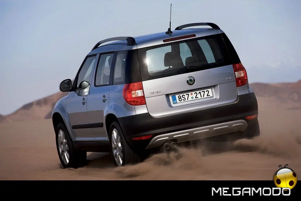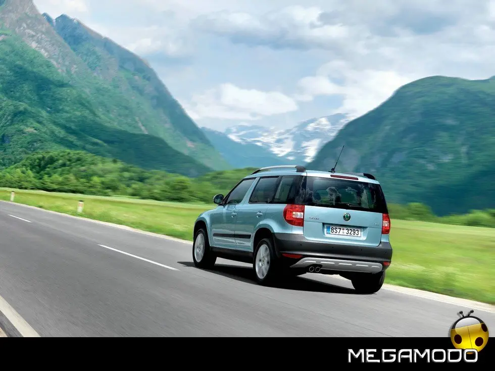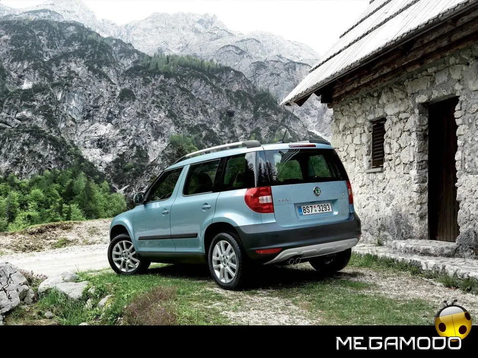 L’aspetto della parte posteriore è ugualmente sobrio, con le luci che si illuminano formando la classica lettera C, mentre il portellone verticale oscilla ampiamente verso l’alto, fino ad “accogliere” anche persone di grande statura. I cristalli laterali del portellone danno l'impressione di una superficie continua fino ai montanti centrali, ricordando il tipico aspetto dei modelli compatti Škoda. Le protezioni sottoscocca anteriori e posteriori indicano la vocazione fuoristradistica della Yeti.
