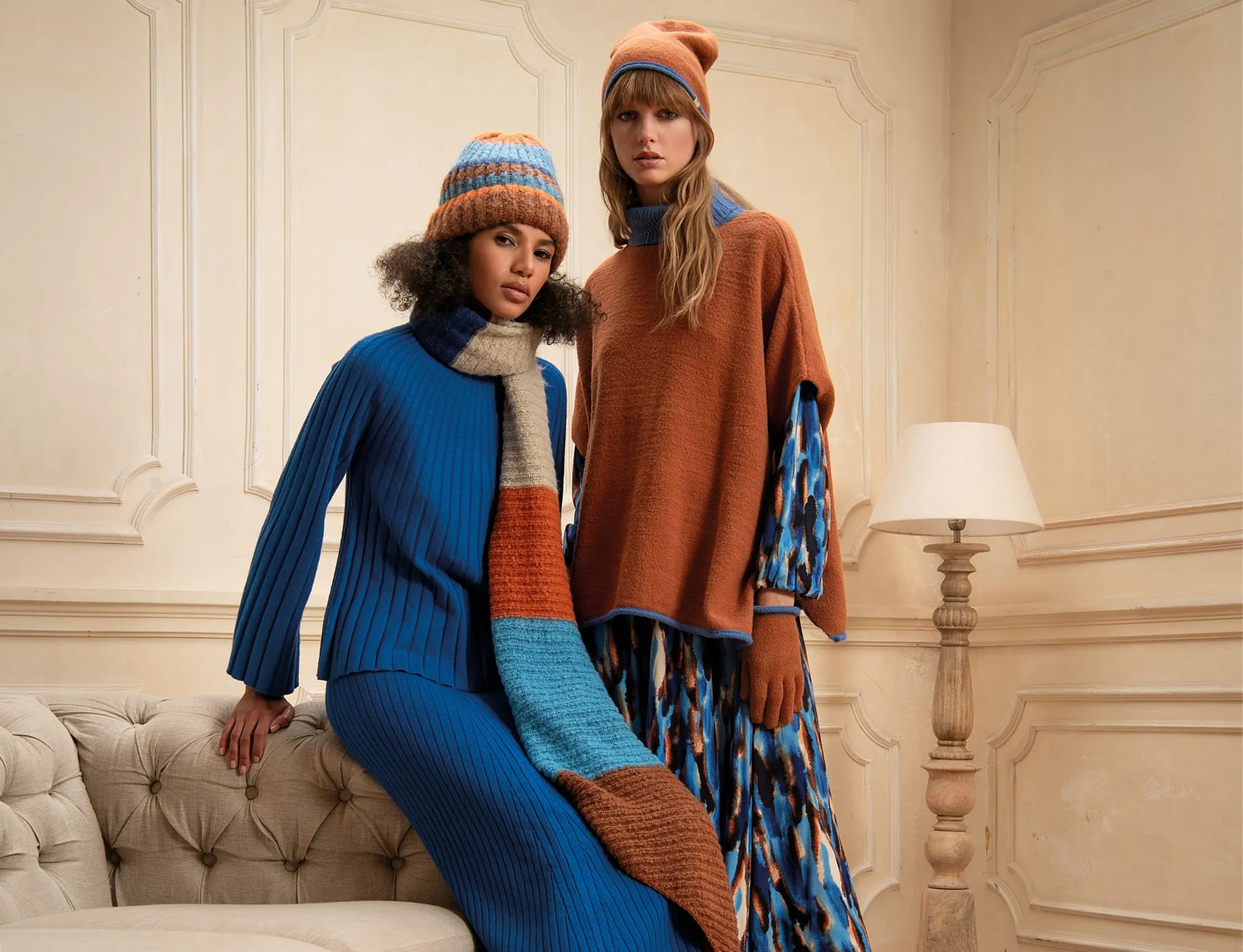 Il cuore della collezione è la maglieria, reinterpretata attraverso l’inconfondibile stile Surkana. Cardigan, maglie, vestiti e pantaloni cropped sono il palcoscenico di una palette cromatica audace che alterna tinte pop e fluo a nuance più classiche. Questi contrasti creano pattern inediti e accostamenti sorprendenti, capaci di portare luce anche nelle giornate più grigie.