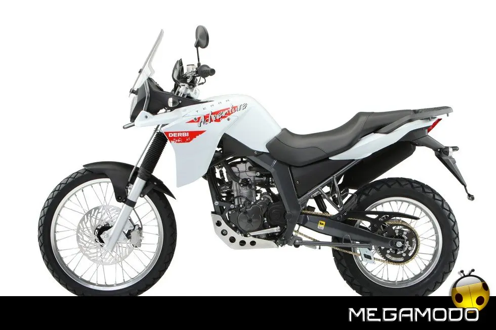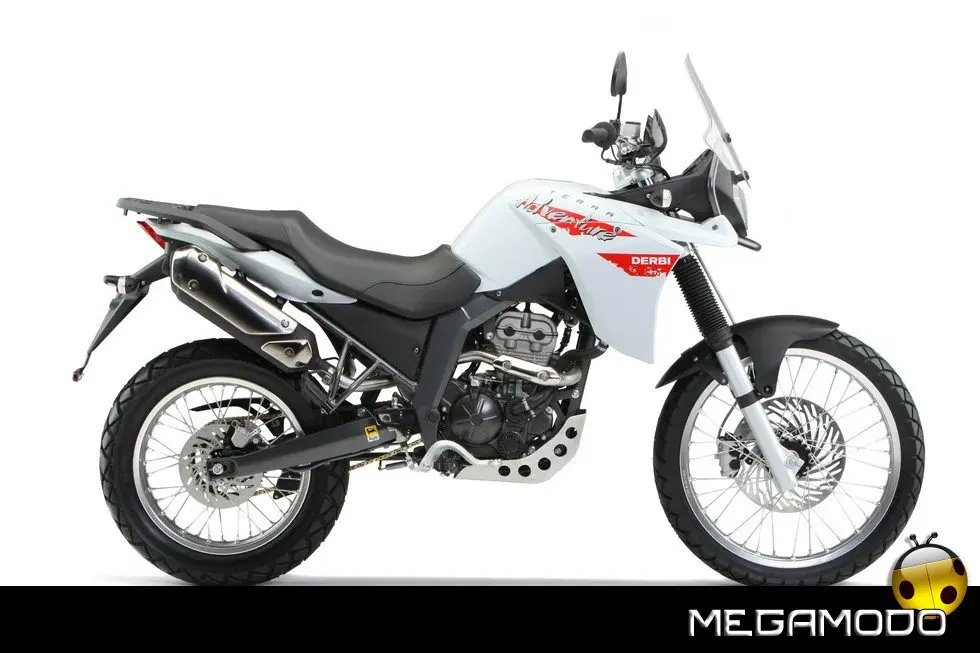Il modello Terra 125 si presenta nella sua versione piú estrema e accattivante, si chiama Terra Adventure 125 ed è destinata a tutti coloro che desiderano vivere nuove esperienze anche al di fuori della città. Con un’immagine ispirata alle moto dei grandi rally, questo veicolo permette di assaporare intensamente l’emozione dell’avventura. Con la nuova Terra Adventure, equipaggiata con il più avanzato e performante motore 125 4T 4V (Euro3) esistente sul mercato, Derbi conferma la sua propensione all’innovazione in questa categoria e si afferma protagonista assoluta del ritorno del sogno delle moto da rally e d’avventura. La Terra Adventure 125 nasce con lo stesso spirito che ha accompagnato tanti avventurieri in sella alle proprie moto nell’esplorazione di nuovi e lontani orizzonti, pronti a sfidare i propri limiti.