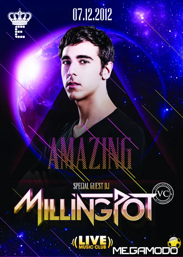 Venerdì 07 dicembre Milano e Roma si uniscono per una one-night prefestiva dagli altri contenuti musicali. Merito delle organizzazioni El Principe Group e Vizi Capitali, questi ultimi organizzatori lo scorso giugno di Soundrome, il festival dance che ha radunato allo Stadio Olimpico artisti del calibro di Tiesto, Ingrosso, Pete Tong, Planet Funk e tanti altri. Venerdì 07 special guest Milling Pot, dj romano ufficiale di Vizi Capitali: musicista, dj, produttore e sound designer, alterna deep house alla electro, senza per questo trascurare sconfinamenti nel dubstep e nella drum&bass.