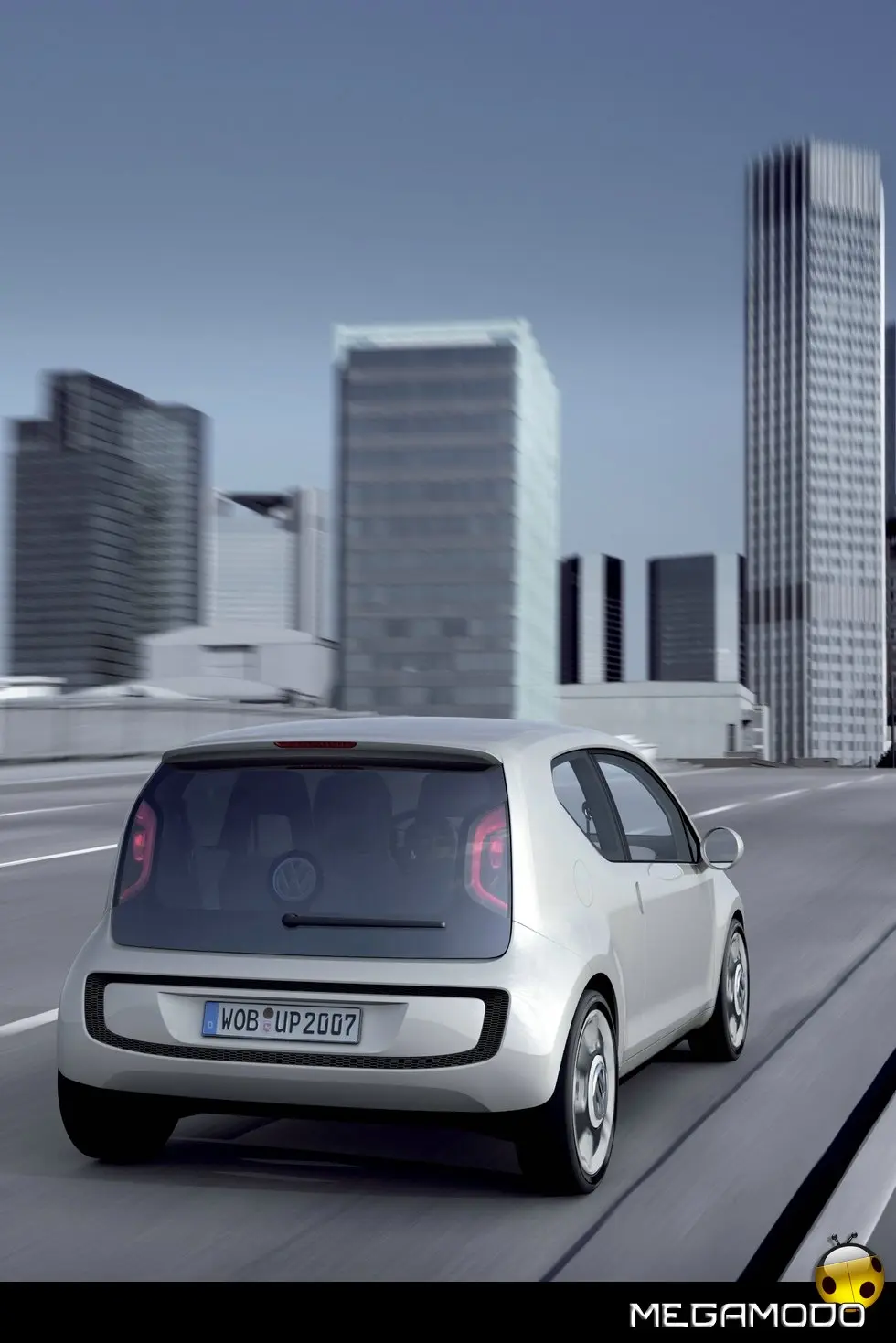 Concetto La up! è una vettura da città, un'automobile per quattro persone di ogni Paese del mondo, per andare al lavoro, all'università, in spiaggia e per fare una gita fuori città. Una piccola che sa essere grande, offrendo più spazio di qualsiasi altra automobile di dimensioni simili (lunghezza 3,45 m, larghezza 1,63 m). Quanto alla motorizzazione, sono ipotizzabili tutte le tecnologie logiche e possibili. Il suo cuore, però, batterà dove una volta batteva il motore del Maggiolino. E ciò cambia tutto: spazio, percezione e design. Puntualizza Walter de' Silva, Responsabile del Design del Gruppo Volkswagen: «La up! è un'automobile il cui linguaggio formale non si esaurirà in breve tempo. Spicca per la sua sobrietà stilistica, realizzata al tempo stesso con grande cura. Questa automobile è una chiara testimonianza dell'indirizzo stilistico che la Volkswagen seguirà in futuro.» Il team di designer e ingegneri che ha realizzato la Concept up! come prima testimonianza di una intera gamma di modelli, lascia prevedere che ne seguiranno diverse altre. Il layout tecnico della up! è stato formulato sotto la guida di Ralf-Gerhard Willner, Responsabile dello sviluppo concettuale. Prima che il progetto fosse avviato, Willner e Walter de' Silva avevano formulato un nuovo rapporto interattivo per i contenuti formali e funzionali dei modelli Volkswagen. Willener e de' Silva affermano: «L'armonia assoluta di basi tecniche e design emozionale è conseguibile solo attraverso la forte competizione tra ingegneri e designer. Solo così nascono delle icone.» Proprio per questo la up! non è una normale superutilitaria dotata di un bel vestito, ma è un insieme innovativo e realizzato con inventiva. La sua forma è essenziale. Ed è così che deve presentarsi, senza compromessi. Non c'è nulla di superfluo. La sua funzione, e quindi il suo design, parlano da sé. Al tempo stesso è stata rifinita con la massima coerenza ogni linea, fino a ottenere un'automobile dall'aspetto originale e accattivante, come tradizione Volkswagen esige.