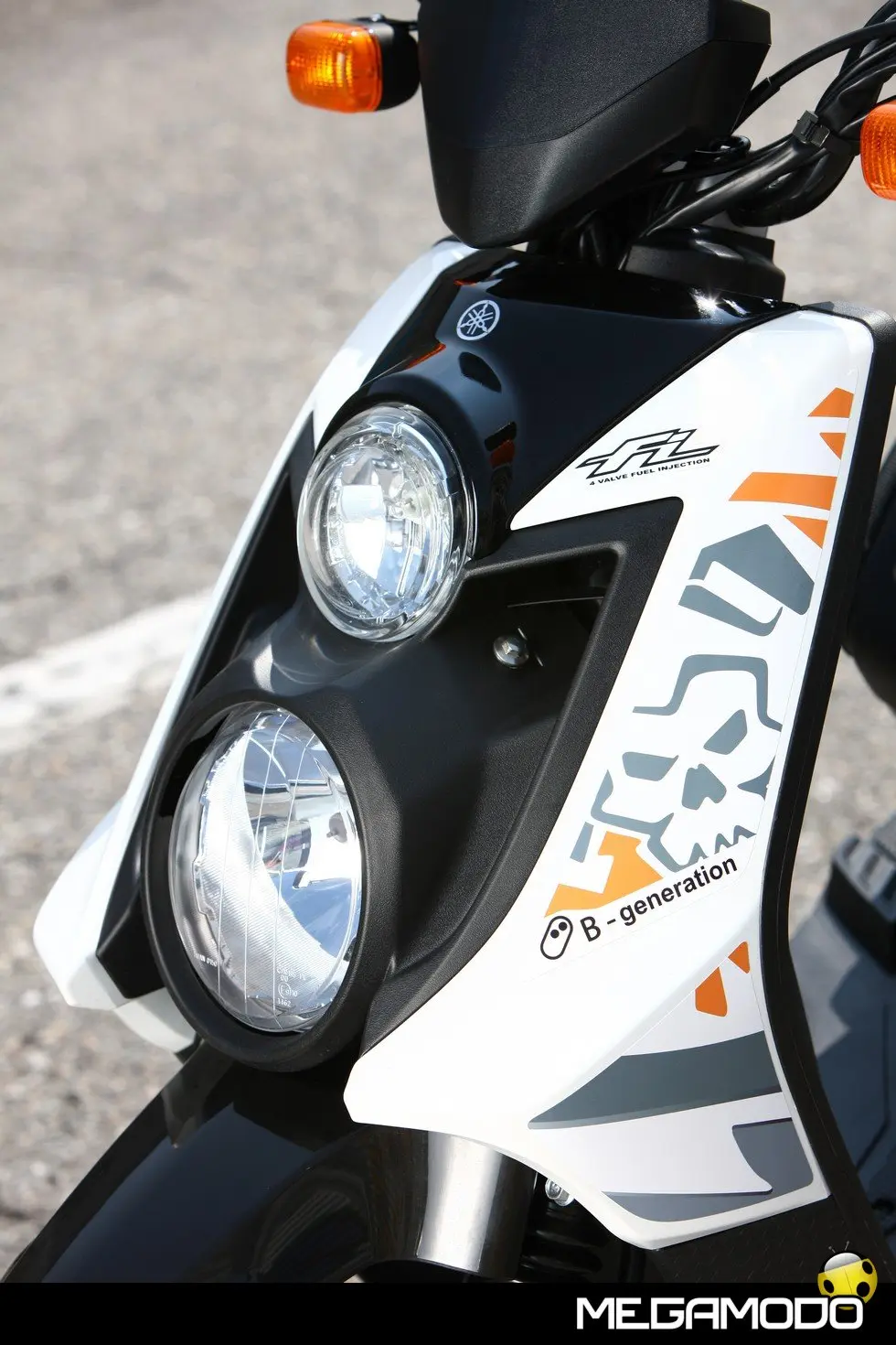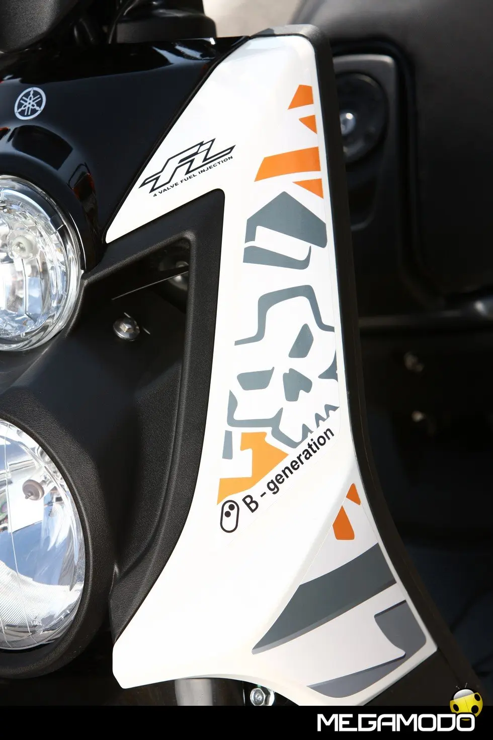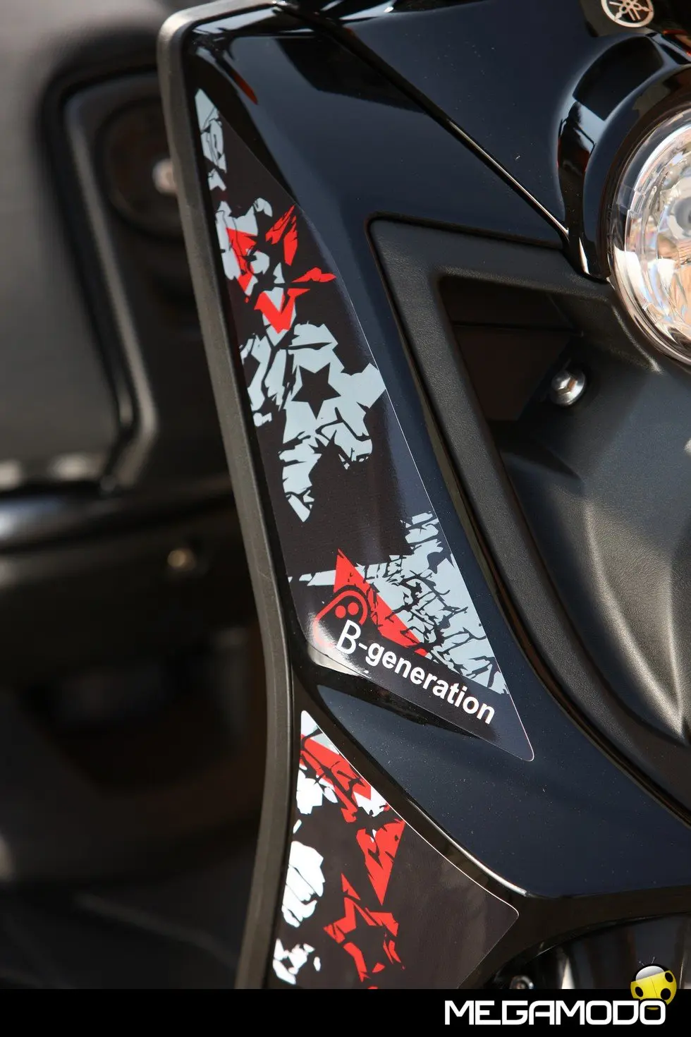 Novità 2010, BW’s 125 B-generation ha tutto il carisma di un modello mitico nella cilindrata 125 cc. Nato per la città, e pensato da Yamaha per i neopatentati A dai 16 anni in su che desiderano un mezzo divertente, sicuro, confortevole anche per la guida con passeggero, ma soprattutto dall’inconfondibile personalità, è in grado di trasformare anche il percorso casa-scuola o, per esempio, scuola-skatepark, in un’esperienza di guida piacevole, appagante e distintiva. Il motore da 125 cc a 4 tempi e raffreddato ad aria è reattivo nel traffico e potente quanto basta per i percorsi a medio raggio, ma sono le nuove grafiche B-generation a rendere il nuovo BW’s 125 B-generation una novità assoluta nel panorama degli scooter dedicati ai teenager. I giovani clienti potranno infatti scegliere tra 10 tipologie differenti di accattivanti grafiche ispirate ai tipici elementi distintivi della street culture metropolitana (5 su base bianca e 5 su base nera). Il configuratore web, on-line su www.yamaha-motor.it/b-generation, e raggiungibile direttamente anche grazie ai QR code (gli originali codice a barre a lettura ottica effettuabile con tutti i telefoni cellulari di ultima generazione) che saranno presenti nelle campagne pubblicitarie di lancio del nuovo BW’s 125 B-generation, consentirà la scelta della grafica prima della fase d’acquisto. 5 i mondi di riferimento identificati tra i più esemplificativi della cultura giovanile contemporanea: Bad Skull, Doll Skull, Pop Star, Rock Star, Bar Code. I giovani Clienti potranno ordinare il BW’s 125 B-generation personalizzato con il tema che preferiscono al prezzo della versione standard. Ma i kit di sticker B-generation saranno in vendita anche separatamente al prezzo di 29 euro, per creare infinite combinazioni o avere uno scooter nuovo ogni volta che lo desidereranno.