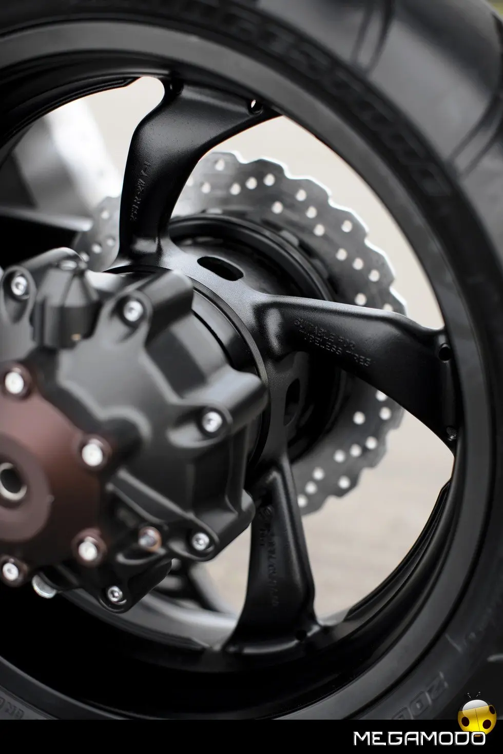 L’angolazione dei cilindri di 65°, rispetto a quella di 70° del modello precedente, riduce la lunghezza fronte-retro del motore. Questa soluzione serve anche a centralizzare le masse per ottenere una guida più neutra, e “ruba” 27mm al modello precedente.